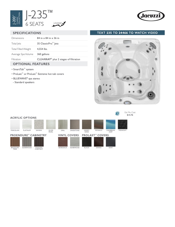 About 2020 Jacuzzi J235 (Pre-Owned)